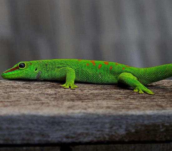 La prochaine foisque vous verrez une feuille bouger dans un arbre, assurez-vous qu'il ne s'agitpas d'un gecko ! Souvent d'un vert vif avec des touches de bleu et de rouge,les geckos mauriciens sont originaires de l'île voisine de Madagascar.Aujourd'hui, on les retrouve dans les arbres fruitiers de l'île et sur lesplages.